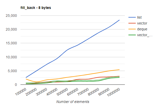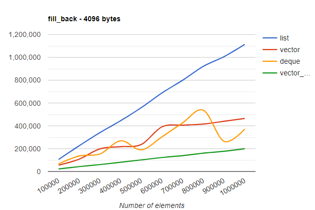 google.load('visualization','1',{packages:['corechart']}); Last week, I wrote a benchmark comparing the performance of std::vector and std::list on different workloads. This previous article received