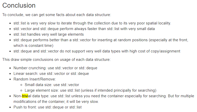 list를 써야할 때를 제외하면 용도에 맞게 vector와 deque를 사용