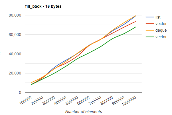 google.load('visualization','1',{packages:['corechart']}); Last week, I wrote a benchmark comparing the performance of std::vector and std::list on different workloads. This previous article received