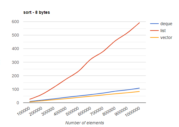 원소의 용량이 큰 경우 list > deque > vector 순서로 성능이 좋음